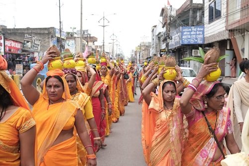महायज्ञ का शुभारंभ शनिवार को भव्य कलश यात्रा के साथ हुआ। श्री शिव मंदिर (श्वेता नर्सिंग होम, सुनालिया पुल) से निकली यात्रा में महिलाओं ने सिर पर कलश रखे, भजन गाए और “हर हर हसदेव” के जयघोष के साथ माँ सर्वमंगला घाट पहुंचीं। पंचांग पूजन और मंडप प्रवेश के साथ पांच दिवसीय यज्ञ का शुभारंभ हुआ, जो देव दीपावली (कार्तिक पूर्णिमा) तक चलेगा।