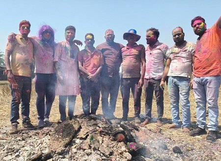 0 होलिका दहन के बाद लोगों ने एक-दूसरे को रंग-गुलाल लगाकर दी शुभकामनाएं