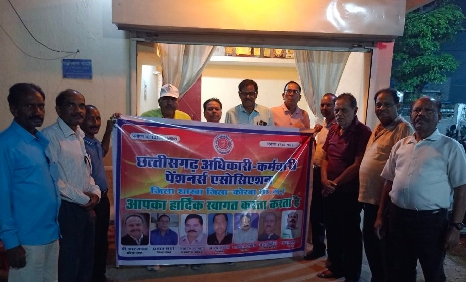 कोरबा। छत्तीसगढ़ अधिकारी कर्मचारी पेंशनर्स एसोसिएशन, की बैठक एमपी नगर स्थित नवीन चौधरी सदन में आयोजित की गई। बैठक का आयोजन जिला शाखा अध्यक्ष प्रभात शर्मा के नेतृत्व में प्रांतीय निकाय के आह्वान पर स्थापना दिवस के अवसर पर किया गया।